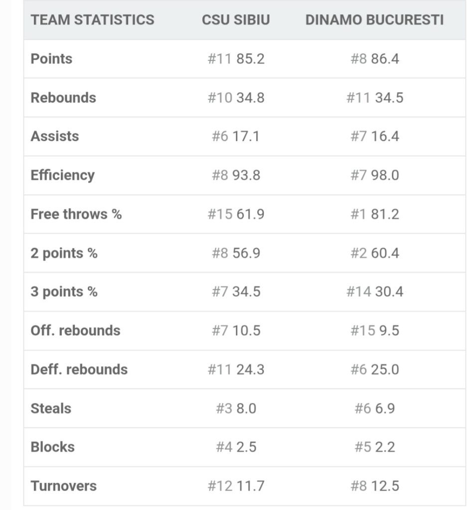 Privind în paralel cele două echipe, prin prisma cifrelor, putem observa că nu apar diferențe semnificative la multe capitole. Dacă Dinamo e ceva mai bună la recuperările defensive, galben-albaștrii își iau revanșa, tot la mustață, în ceea ce privește mingile recuperate în atac. În timp ce bucureștenii marchează un pic mai multe puncte pe meci, ardelenii pierd aproape o posesie mai puțin.