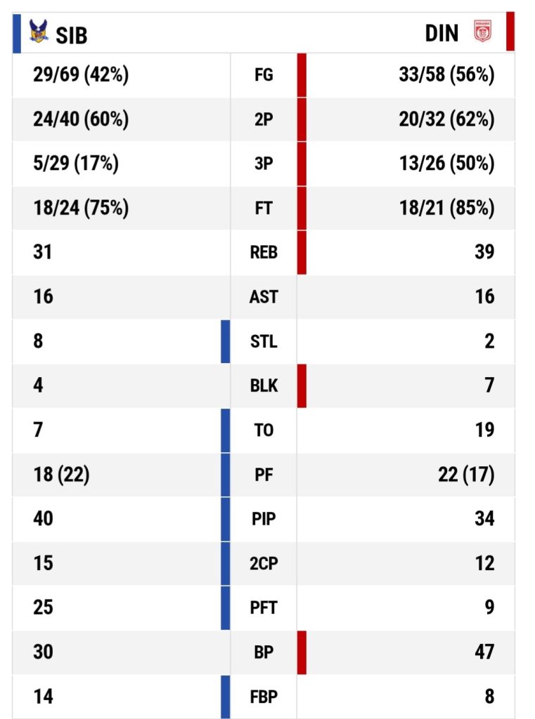 Deși statisticile nu anunțau acest aspect, Dinamo a fost net superioară la capitolul aruncărilor de trei puncte, acolo unde a reușit să transforme 13 din cele 26 de șanse avute, față de procentajul de doar 17% al trupei lui Fleșeriu. Deși au pierdut cu 12 mingi în plus față de sibieni, dinamoviștii au dominat copios finalul de meci, bazându-se pe jocul bun al lui Stark, Drame, Marks și Lewis.