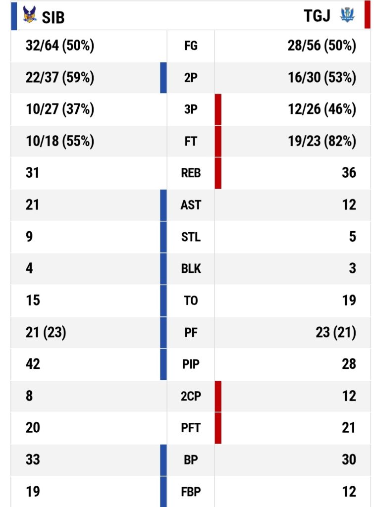 Uitându-ne pe statistici, putem observa că oaspeții din această seară au dominat capitolul recuperărilor și al aruncărilor de trei puncte, Sibiul venind mai aproape la aceste capitole spre final de joc, atunci când a căutat revenirea. Chiar dacă a pierdut cu patru mingi mai multe decât CSU Sibiu, CSM Târgu Jiu a reușit să compenseze și de la linia de libere, de acolo de unde a avut un procentaj de reușită de 82%.
