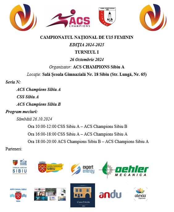 Participarea echipelor ACS Champions este cofinanțată prin Agenda Sport a Primăriei Municipiului Sibiu și a Consiliului Județean Sibiu.