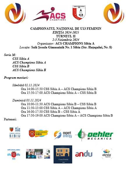 - Ora 11:30-13:00: CSS Sibiu A – ACS Champions Sibiu A